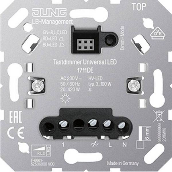 Механизм светорегулятора Jung Jung 1711DE предназначен для регулировки яркости освещения в помещении. С его помощью можно легко изменять интенсивность света от 20 до 410 Вт, создавая комфортные условия для работы, отдыха или чтения. Механизм имеет скрытый монтаж, что позволяет интегрировать его в любой интерьер без видимых элементов. Надежный и простой в использовании, механизм светорегулятора Jung Jung станет отличным выбором для обеспечения уютной атмосферы в вашем доме или офисе.