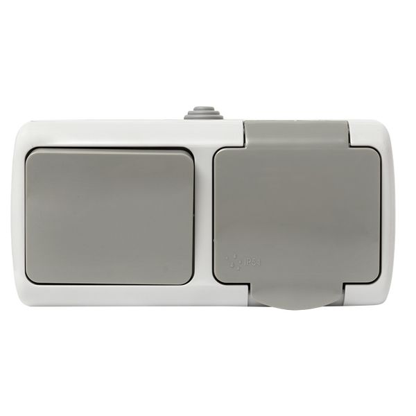 Блок из одноклавишного выключателя и розетки EKF серии Мурманск позволяет организовать электроснабжение в условиях высокой влажности и пыльных помещениях, на улице при условии установки под навесом. Ступенчатые герметичные вводы с двух сторон изделия обеспечивают надежную защиту, позволяя использовать устройство в агрессивных условиях.