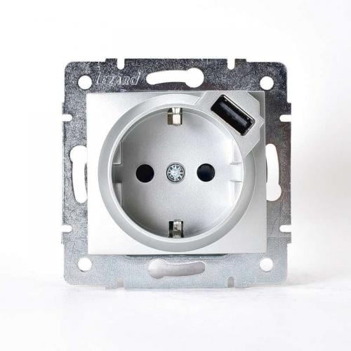 Приобретите механизм розетки 1-м СП KARINA 16А с заземлением и USB разъемом серебристого цвета материала Lezard 707-4388-181 и наслаждайтесь удобством и функциональностью в использовании электроприборов и зарядных устройств.
