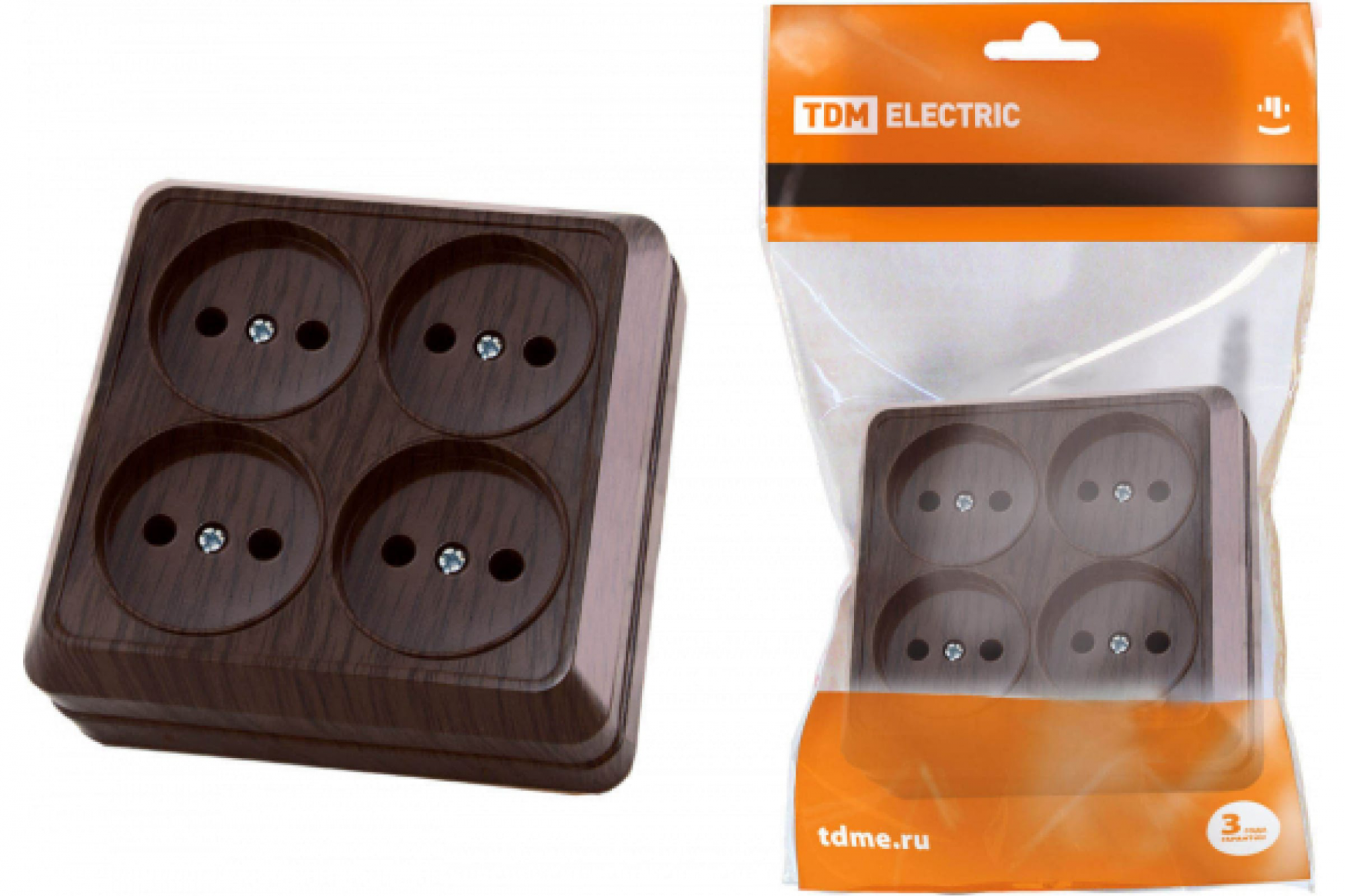 TDM Ладога Бук Розетка 4-местная 2П открытая установка IP20 10A SQ1801-0320 - идеальное решение для тех, кто ищет надежную и безопасную розетку для своего дома или офиса.