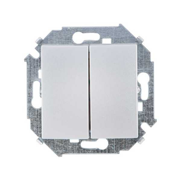 Переключатель двухклавишный 16А 250В винтовой зажим Simon 15, алюминий - это стильный и надежный переключатель, который предназначен для использования в бытовых и коммерческих помещениях. Он имеет две клавиши для управления освещением или другими электрическими устройствами.Этот переключатель способен выдерживать нагрузку до 16А при напряжении 250В, что гарантирует его долговечность и надежность. Винтовой зажим обеспечивает надежное соединение с проводами, что делает установку простой и безопасной.
