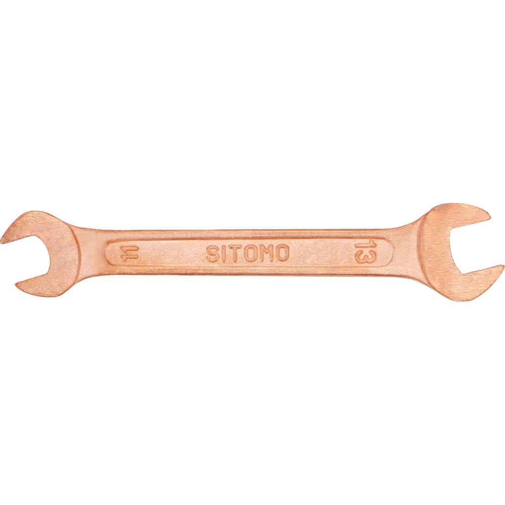 Двусторонний гаечный ключ предназначен для работ с резьбовыми соединениями в процессе ремонтных и монтажных работ. Инструмент выполнен из высококачественной стали, благодаря чему отличается прочностью и долговечностью. Омедненное покрытие обладает повышенной устойчивостью к высокотемпературному воздействию случайной искры. Ключ может применяться на предприятиях с наличием потенциально опасных сред, а также в быту.