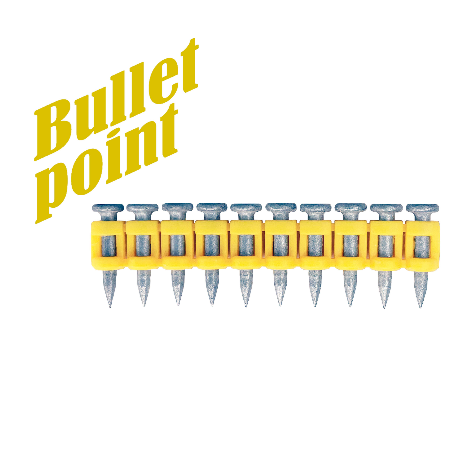 Дюбель-гвозди по бетону и металлу Toua CN с острием Bullet Point и механической гальванизацией.Подходят для большинства газовых и пневматических монтажных пистолетов, широко используются в общестроительном монтаже: монтаж фанеры к бетону, монтаж тонких металлических и алюминиевых направляющих к бетону и кирпичу, монтаж профлиста к бетону, кирпичу и металлическим балкам. Так же применяются для пристрелки направляющих ГКЛ, штукатурной сетки и инженерных систем.
