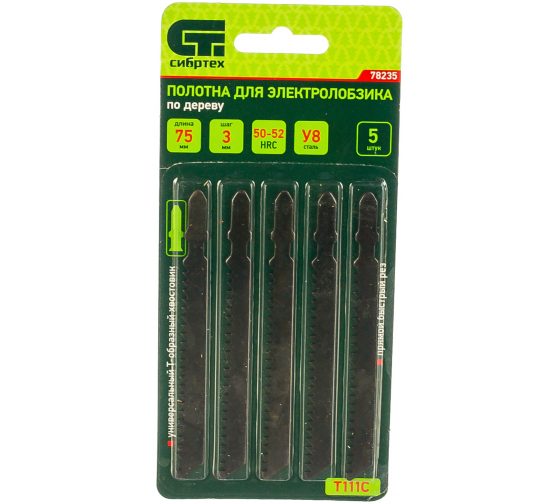 Полотна для электролобзика по дереву, 5 штук T111C, 75 х 3 мм от компании СИБРТЕХ - незаменимый инструмент для точной и чистой обработки древесины. Каждое полотно изготовлено из прочного материала, обеспечивающего долгий срок службы и отличное качество реза. Идеально подходит для резки древесины различной твердости, обеспечивая высокую производительность и точность. Полотна имеют стандартный размер 75 х 3 мм, что делает их совместимыми с большинством электролобзиков. Обеспечивают быструю и эффективную работу, делая процесс обработки древесины легким и комфортным.