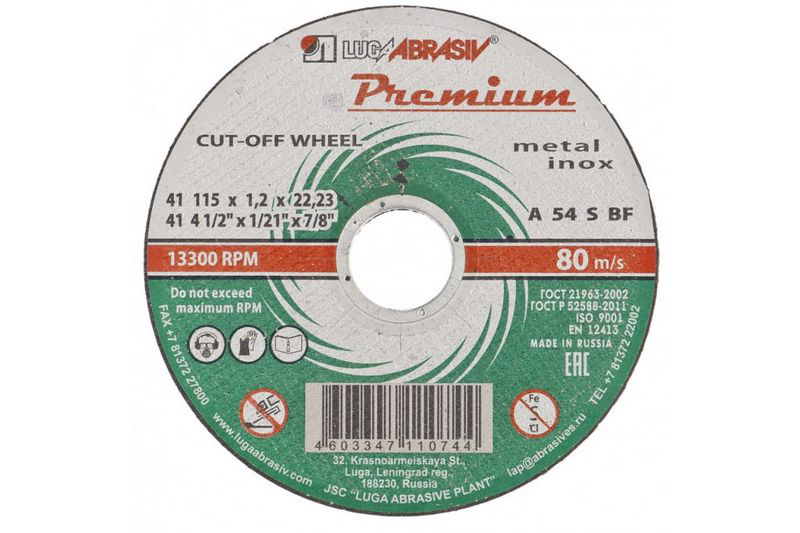В нашем магазине «Главэлектрика» в Москве-Чертаново, вы можете приобрести товар: «Круг отрезной по металлу+нерж. 115 х 1,2 х 22 мм, ПРЕМИУМ (Луга)// Россия» с доставкой по г. Москва-Чертаново.
