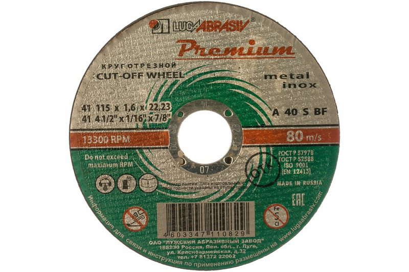 В нашем магазине «Главэлектрика» в Москве-Чертаново, вы можете приобрести товар: «Круг отрезной по металлу+нерж. 115 х 1,6 х 22 мм, ПРЕМИУМ (Луга)// Россия» с доставкой по г. Москва-Чертаново.
