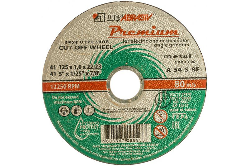 Круг отрезной по металлу+нержавеющей стали диаметром 125 мм, толщиной 1,0 мм и внутренним диаметром отверстия 22 мм от компании Луга - это качественный и надежный инструмент для профессионального использования. Продукт изготовлен в России и относится к премиум-классу, что гарантирует его долгий срок службы и высокую производительность. Круг отрезной идеально подходит для работы с металлическими и нержавеющими сталями, обеспечивая точные и чистые резы без лишних усилий.