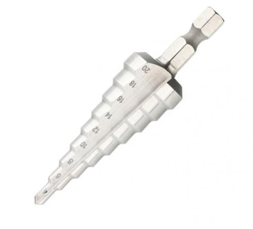 В нашем магазине «Главэлектрика» в Москве-Чертаново, вы можете приобрести товар: «Сверло ступенчатое по металлу 4-6-8-10-12-14-16-18-20мм, P6M5, шестигранный хвостовик Вихрь, , шт» с доставкой по г. Москва-Чертаново.