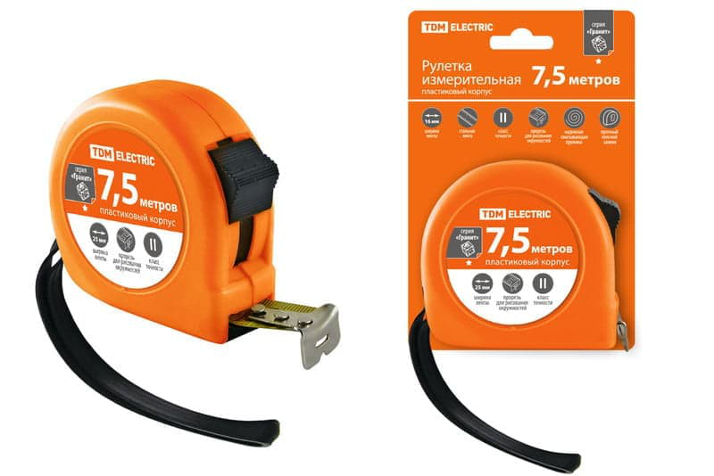 Этот инструмент применяется для измерения измерение длины предметов, расстояний, проведение разметочных работ. Незаменимый инструмент при строительных и отделочных работах. Для рулеток серии ''Гранит'' существует возможность чертить круглые отверстия при помощи прорези в крючке.