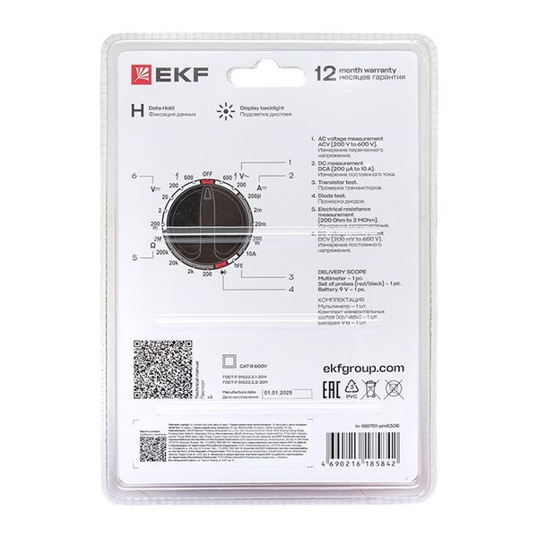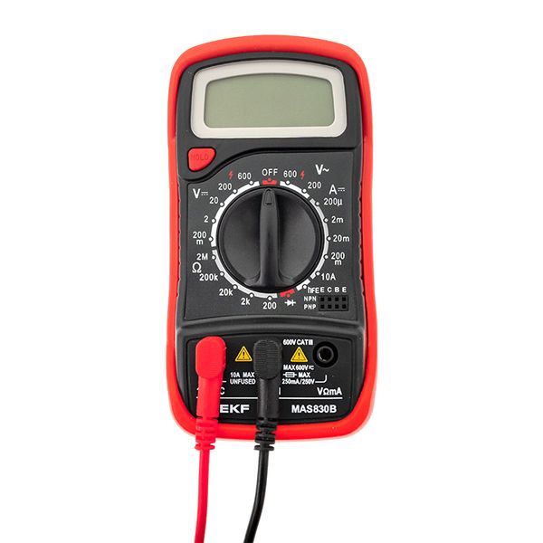 Мультиметр — это универсальный измерительный прибор. В функционал цифрового мультиметра MAS830B EKF Master входит измерение переменного напряжения до 600В, измерение постоянного напряжения до 600В, измерение постоянного тока 10А, измерение электрического сопротивления до 2МОм, проверка диодов и транзисторов.