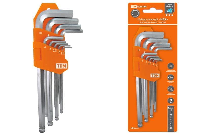 В нашем магазине «Главэлектрика» в Москве-Чертаново, вы можете приобрести товар: «Набор ключей имбусовых TDM HEX (шестигранники), 9штук 1.5-10мм, короткие, CR-V сталь "Алмаз" » с доставкой по г. Москва-Чертаново.