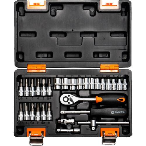 Набор инструментов Вихрь - это удобный и компактный набор, который содержит 29 различных предметов, изготовленных из хром-ванадиевой стали. Каждый инструмент имеет квадратный привод 1/4 дюйма, что делает их универсальными и подходящими для большинства работ. Все инструменты хранятся в прочном пластиковом кейсе, который обеспечивает удобство хранения и транспортировки. Набор инструментов Вихрь идеально подходит как для профессиональных мастеров, так и для любителей ремонта и монтажа.