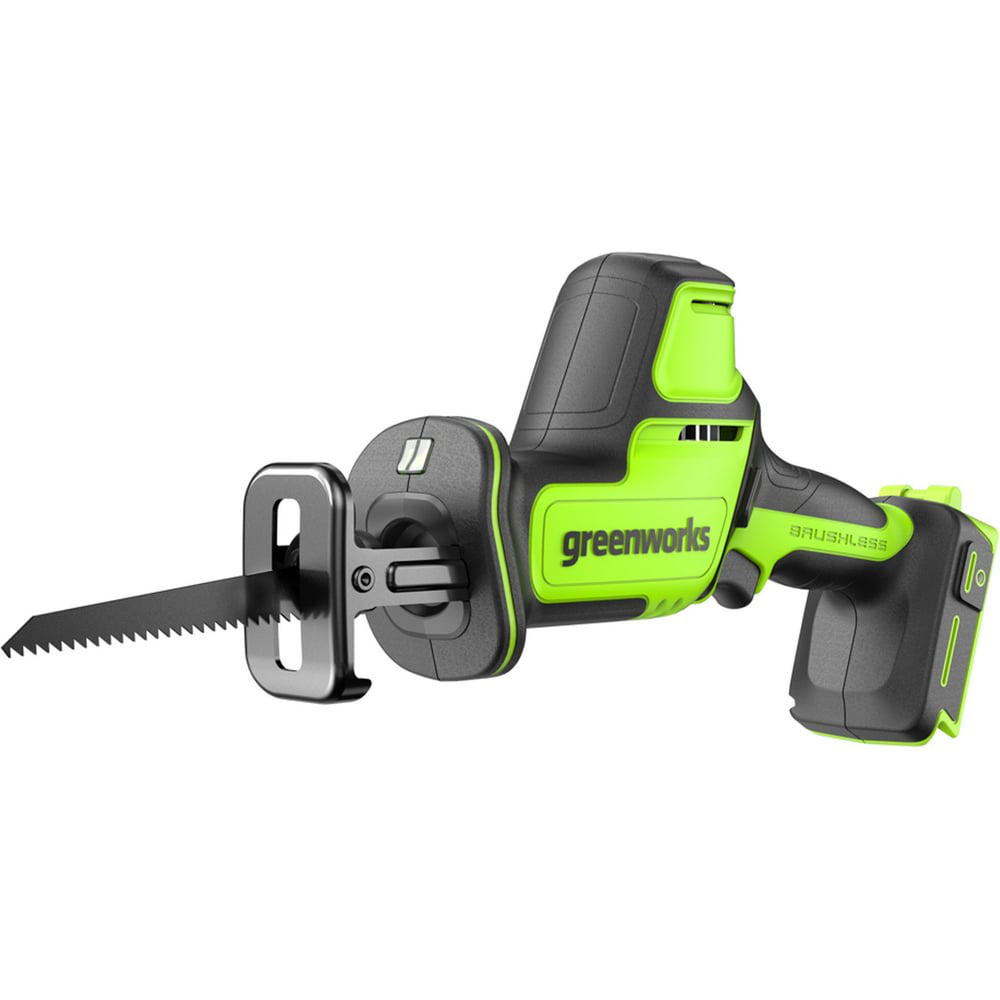Компактная и мощная сабельная пила для работ на стройке и даже в саду Корпус имеет нескользящее покрытие в зонах контроля для комфортной и уверенной работы в любом положении. Построена на основе мощного и надёжного бесщёточного двигателя DigiPro™, который эффективно использует энергию аккумулятора и не теряет мощность под нагрузкой. Greenworks Intelligent Power – инновационная цифровая система управляет и контролирует батарею, инструмент и зарядное устройство для максимальной производительности и долгого срока службы. В зависимости от используемой оснастки поможет в резке древесины, пластика, металла и прочих материалов. Выполнять прямые и погружные резы различных материалов поможет подвижная опора стального упора. Металлический корпус редуктора, большой ход штока механики редуктора и высокая частота ходов обеспечивают высокую скорость реза. Быстрая смена оснастки благодаря патрону-пилкодержателю с бесключевой системой. Яркая LED-подсветка рабочей зоны упростит работу в условиях низкой освещённости. Выключатель с защитой от случайного пуска, защита от перегрузки / перегрева, плавный пуск – безопасный и комфортный инструмент для любой работы