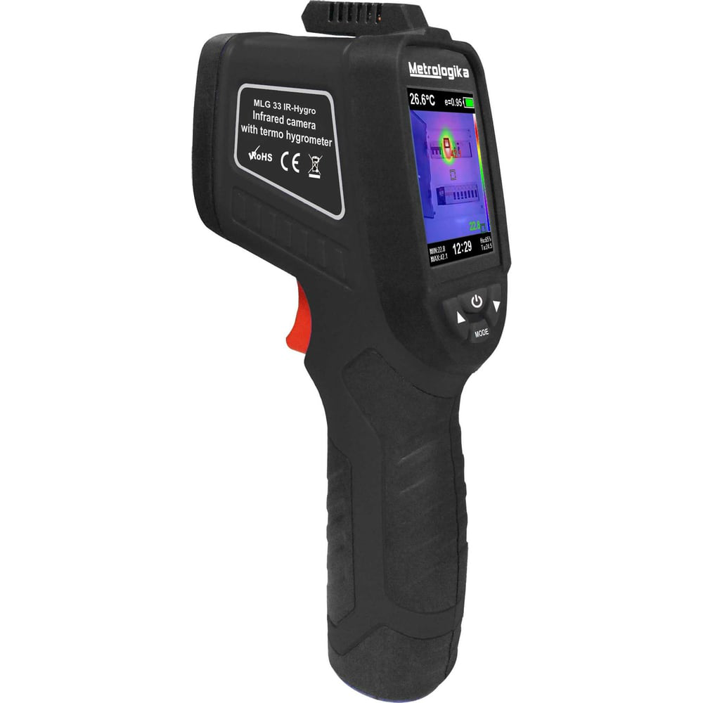 Тепловизор-термогигрометр Metrologika MLG 33 IR-Hygro MLG33RH снабжен инфракрасной матрицей 33 на 33 (1089 пикселей), встроенным термогигрометром и визуальной камерой. Данное сочетание предоставляет расширенный возможности и не имеет аналогов на рынке.Прибор позволяет измерять основные параметры окружающей среды, выявлять тепловые потери конструкций в инфракрасном диапазоне, точно измерять температуру деталей и быстро сохранять результаты контроля с временем съемки и фотофиксацией объектов.Быстро переключаемое совмещение видимого изображения с инфракрасным (5 градаций совмещения).Возможна работа от сменных батарей/аккумуляторов и даже непрерывная работа при питании от USB кабеля.Передовая элементная база и современные интерфейсы позволили сделать точные измерения доступными самому широкому кругу пользователей в разных областях профессиональной деятельности.Тепловизор-термогигрометр особенно удобен для электриков и представителей коммунальных служб.В октябре 2023 года тепловизоры MLG внесены в Реестр Средств Измерений РФ и поставляются обязательно с поверкой (с декабря 2024).