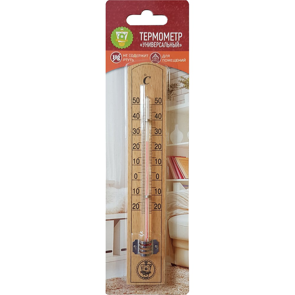 Универсальный термометр GARDEN SHOW УТ12512 предназначен для измерения температуры воздуха в помещении. Изделие выполнено из дерева, снабжено металлической заслонкой и стеклянной колбой. Имеет широкий рабочий диапазон температур - от -20 до +50 градусов со шкалой деления в 10 градусов Цельсия. Цена деления составляет 1 градус. Термометр снабжен специальным отверстием для крепления. Не содержит ртути. Термометрическая жидкость: метилкарбитол.