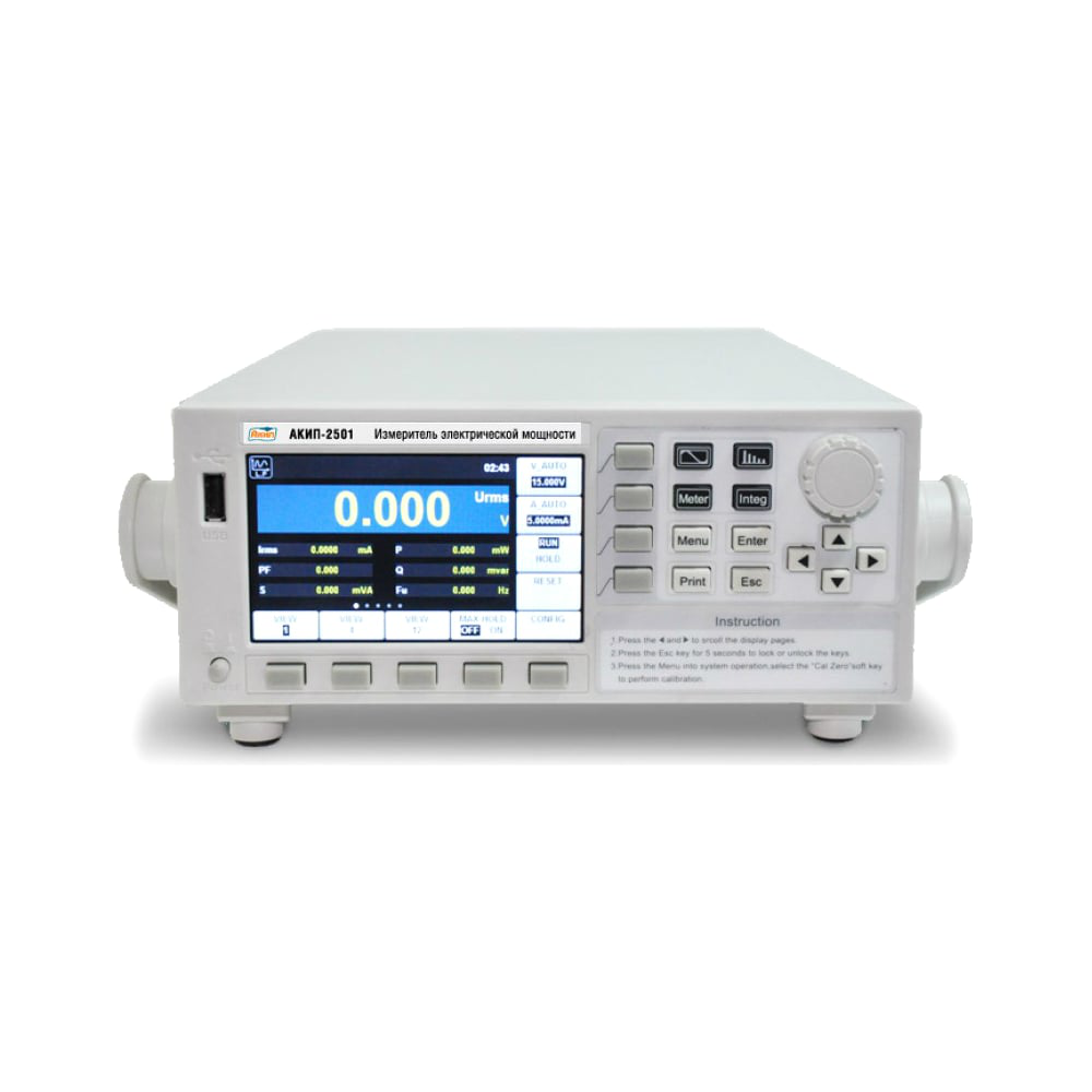 Измеритель мощности АКИП 2501 - надежный прибор, используемый для измерения 27 различных параметров. На экране одновременно отображаются показатели мощности, тока, напряжения, частоты U/I (гармоники до 50-й, коэффициент мощности, разность фаз и др.). Для безразрывного измерения силы тока с помощью клещей предусмотрен аналоговый вход. Есть возможность сохранения данных и скриншотов на USB-flash.