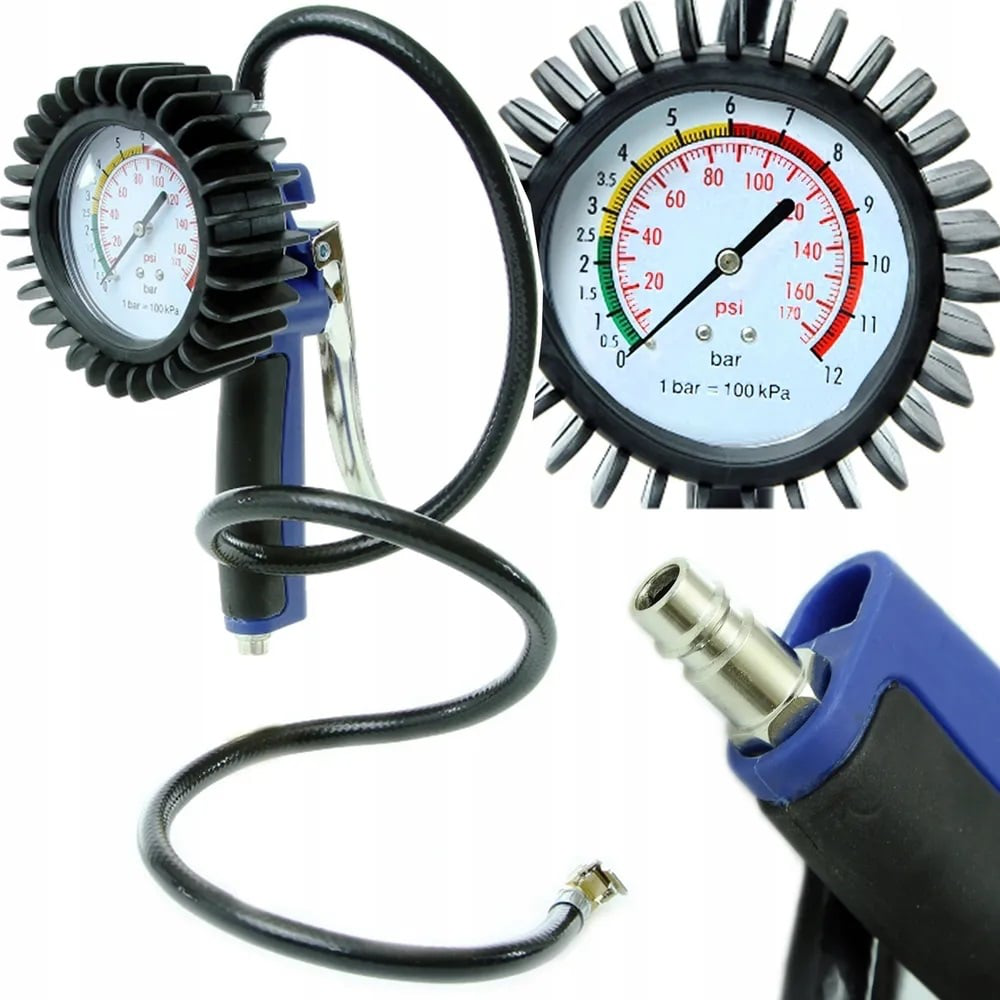 Пистолет для подкачки шин ARMA TG-68 - это профессиональный инструмент, используемый для подачи и спуска воздуха, а также определения давления в шинах. Пистолет имеет удобную эргономичную рукоятку, которая улучшает комфорт работы, очень прочный корпус пистолета и резиновая защита манометра Fi 80 мм, обеспечивает долгую и бесперебойную работу устройства, шланг длиной 1000 мм обеспечит удобный доступ в любое место. Преимущества устройства: легкая композитная конструкция; высокая точность измерения; длинный, гибкий шланг для подключения; возможность наполнения и спуска воздуха одной рукой; большой, легко читаемый дисплей; измерение давления в барах. Технические данные: диаметр манометра 80 мм; длина кабеля 1000 мм; диапазон измерения 1-12 бар.