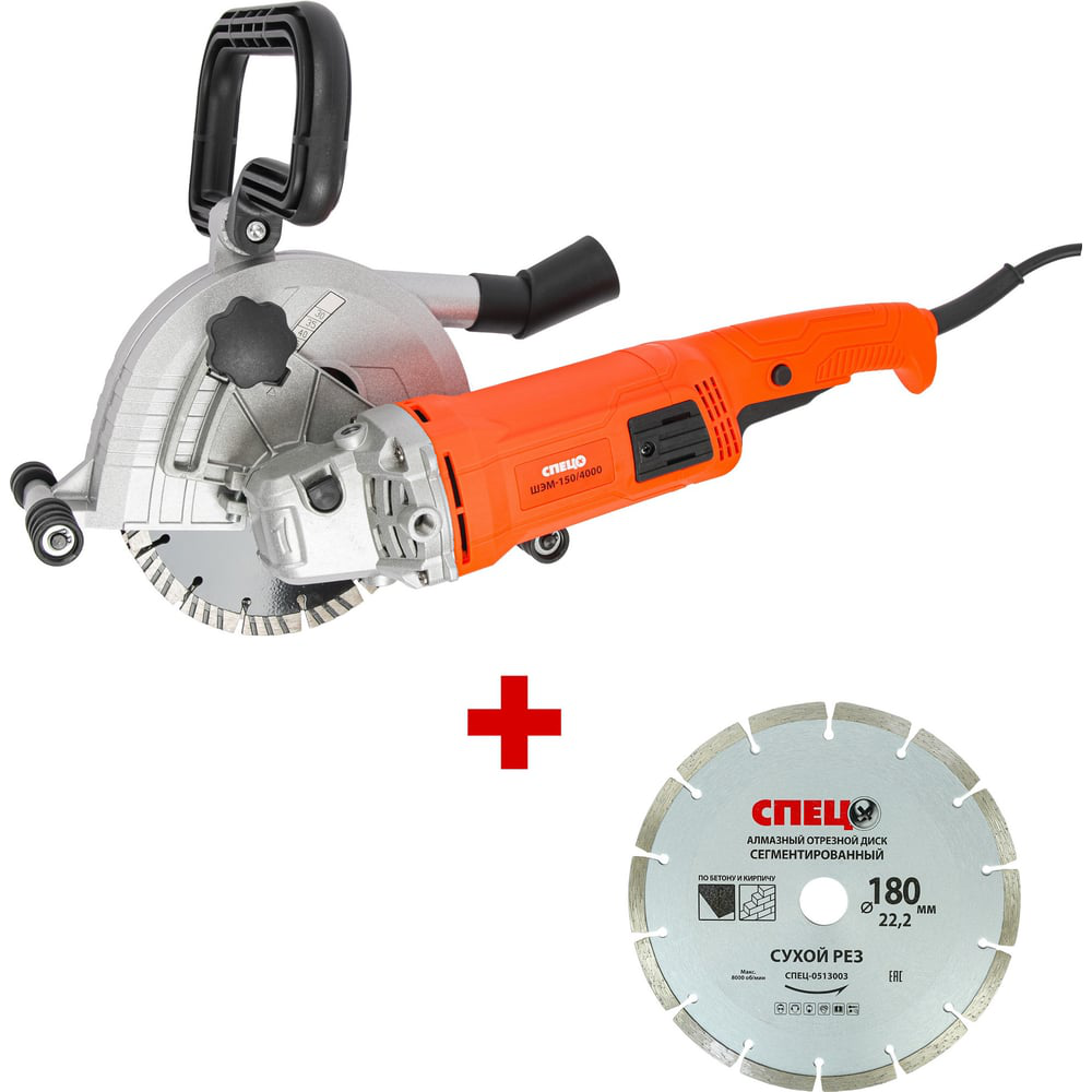 Электрический штроборез СПЕЦ ШЭМ-150/4000, 2200Вт, 2 диска 180мм, оборудован мощным электромотором, что позволяет выполнять большой объем работы. Служит для проделывания штроб в бетонных и кирпичных конструкциях.