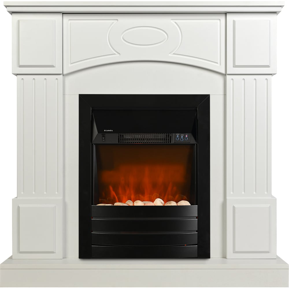 Электрокамин с порталом PLANTA PORT005W-FS600B украсит Ваш интерьер, а также подарит тепло и уют Вашему дому. Данный каминокомплект с порталом и камином благодаря элегантному дизайну передней панели идеально подойдёт под любой интерьер – от классического до интерьера в стиле хай-тек. Стильный и современный декоративный портал для камина изготовлен из ламинированного ДСП в белом цвете. Компактные размеры портала (Ш*В*Г: 97,5*98,2*35 см) позволяют установить электрический камин с очагом в любую комнату. Портал для электрического камина поставляется в разобранном виде, собрать его не составит труда, так как в комплект поставки входит подробная инструкция по сборке и вся необходимая фурнитура. Каминокомплект включает в себя также электроочаг PLANTA PFP-FS600-black, выполненный в черном цвете. Его можно встроить в портал, а также использовать как отдельностоящий камин и легко перемещать из комнату в комнату. Электрический камин полностью подобен настоящему, имеет 5 уровней яркости пламени Real Flame и звук потрескивания дров. Передняя решетка камина выполнена в стильном минималистичном дизайне. Камин имеет три режима работы: режим имитации пламени 5Вт без обогрева, режим имитации пламени+обогрев 1000 Вт и режим имитации пламени+обогрев 2000 Вт. Также имеется таймер включения и выключения: можно заранее выбрать, сколько времени будет работать электрокамин. Электроочаг PLANTA PFP-FS600-blackобеспечит быстрый нагрев помещения до 25 кв.м