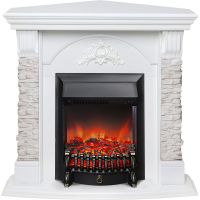 Угловой каминокомплект RealFlame Athena corner gr std wt + Fobos BL 10016087 сочетает в себе строгость и утонченность, роскошь и сдержанность. Декорированные искусственным камнем колонны, обрамляющие топку по бокам, переходят в плавно изогнутые капители, поддерживающие вместительную столешницу. Камин по бокам украшают скалистые колонны светло-серого оттенка, которые прекрасно сочетаются с праздничным белоснежным тоном портала. Предметы интерьера белого цвета всегда создают в помещении дополнительный уют. Светлые оттенки расслабляют, из-за чего в комнате приятно находиться, хорошо отдыхать. Оригинальность дизайна очага Fobos BL достигается литой чугунной решеткой, имитирующей колосник и внешней рамкой с небольшим капором. Благодаря задней зеркальной стенке создается эффект объемного пламени и дополнительной игры света и тени. Звук потрескивающих дров и наличие обогрева усиливает сходство с настоящим очагом. Очаг с функцией обогрева. 2 уровня регулировки мощности обогрева. Мощность обогрева: 0,75/1,5 кВт Защита от перегрева Регулировка яркости пламени Звуковой эффект