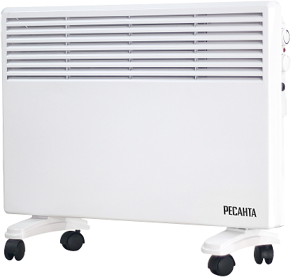 Конвектор Ресанта ОК-1500 подходит для обогрева помещений, включая жилые. Это электрический отопительный прибор, оптимальное напряжение сети для эксплуатации которого составляет 220-230В/50Гц. При этом потребляемая мощность составляет 750/1500 Вт. Компактный и лёгкий конвектор экономично расходует электроэнергию, но при этом способен быстро нагреть воздух в помещении до нужной температуры.Нагревательный элемент электроконвектора монолитный и имеет Х-образную форму. В основе работы прибора лежит принцип естественной конвекции: он повышает температуру воздуха, проходящего через нагревательный элемент на высоте 20-40 см от пола. Поток тёплого воздуха поднимается вверх и равномерно распределяется по комнате. Одного электроконвектора достаточно для обогрева помещения площадью до 20 м².Конвектор РЕСАНТА ОК-1500 на опоре с колёсами устойчив и мобилен. Он дополнительно оснащён терморегулятором, защищающим устройство от перегрева. Данная модель – с механическим управлением.