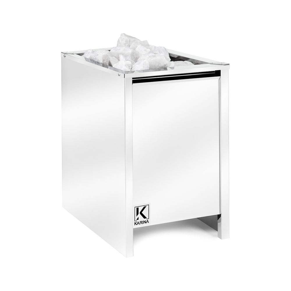 Электрическая печь KARINA Classic 9 – это компактная и простая в управлении каменка, чья мощность позволяет отопить парильное помещение семейной сауны объемом до 14 м3.Модель имеет лаконичный, но современный внешний вид, благодаря чему печь впишется в интерьер любой сауны.Для работы электропечи с такой мощностью необходима будет сеть с напряжением 380 В. Отлично подходит для быстрого обогрева парной.Нагревательным элементом в печке является ТЭН из высококачественной нержавеющей стали. Его диаметр составляет 10 мм. Подобные нагреватели не боятся попадания влаги. Это позволяет устанавливать электрическую каменку как в финские сауны с «сухим» паром, так и в русские традиционные бани с повышенной влажностью, потому что на камни, находящиеся в электропечи можно спокойно лить воду для повышения влажности пара.ТЭН из специальной нержавейки обладает повышенной электробезопасностью и большой тепловой инерцией.Представленная модель электрокаменки имеет отсек для камней, который вмещает до 50 кг. Она монтируется напольно.Электропечь не имеет в комплектации выносного пульта управления, он приобретается отдельно.
