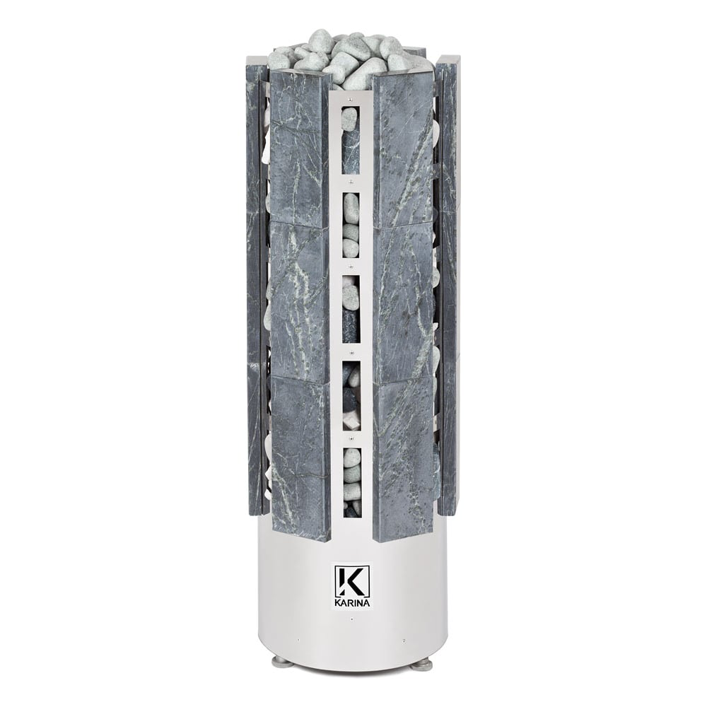 Электрокаменка Karina Forta 15 Талькохлорит предназначена для использования в парных объемом до 24м3. Печь выполнена в напольном варианте, цилиндрической формой дополненной плитами из натурального камня Талькохлорита. Напряжение питания - 380В. Данная модель имеет 6 тэнов, расположенных в виде треугольника. В центре внизу расположен бак для воды емкостью 5л, который является парогенератором. Выше парогенератора имеется емкость под мелкие камни объемом 4.7л, вмещающая 10 кг мелкого камня, называемая закрытой каменкой с воронкой для подачи воды и получения мелкодисперсного пара.Если в парогенератор не заливать воду, то каменка разогреет парную до высокой температуры (100 -120°C) с относительной влажностью воздуха 10-12% - режим финской сауны. Если залить воду в парогенератор, то при разогреве парной вода будет испаряться и увлажнять воздух до режима русской бани 60-70°C и 40-50% влажности. В обоих случаях возможно использование закрытой каменки, которая дополнительно прибавит мелкодисперного необжигающего пара, от которого вы получите удовольствие находясь в парном помещении.Управление электропечью осуществляется с помощью выносного пульта, который не входит в комплектацию.Все корпусные элементы печи выполнены из нержавеющей стали. Нагревательный элемент - ТЭН диаметром 10мм. Наружный кожух каменки дополнительно облицован плитами из Талькохлорита толщиной 40мм, что придает ей большую теплоемкость и меньшее излучение от металлических элементов, которые выжигают воздух в парной.