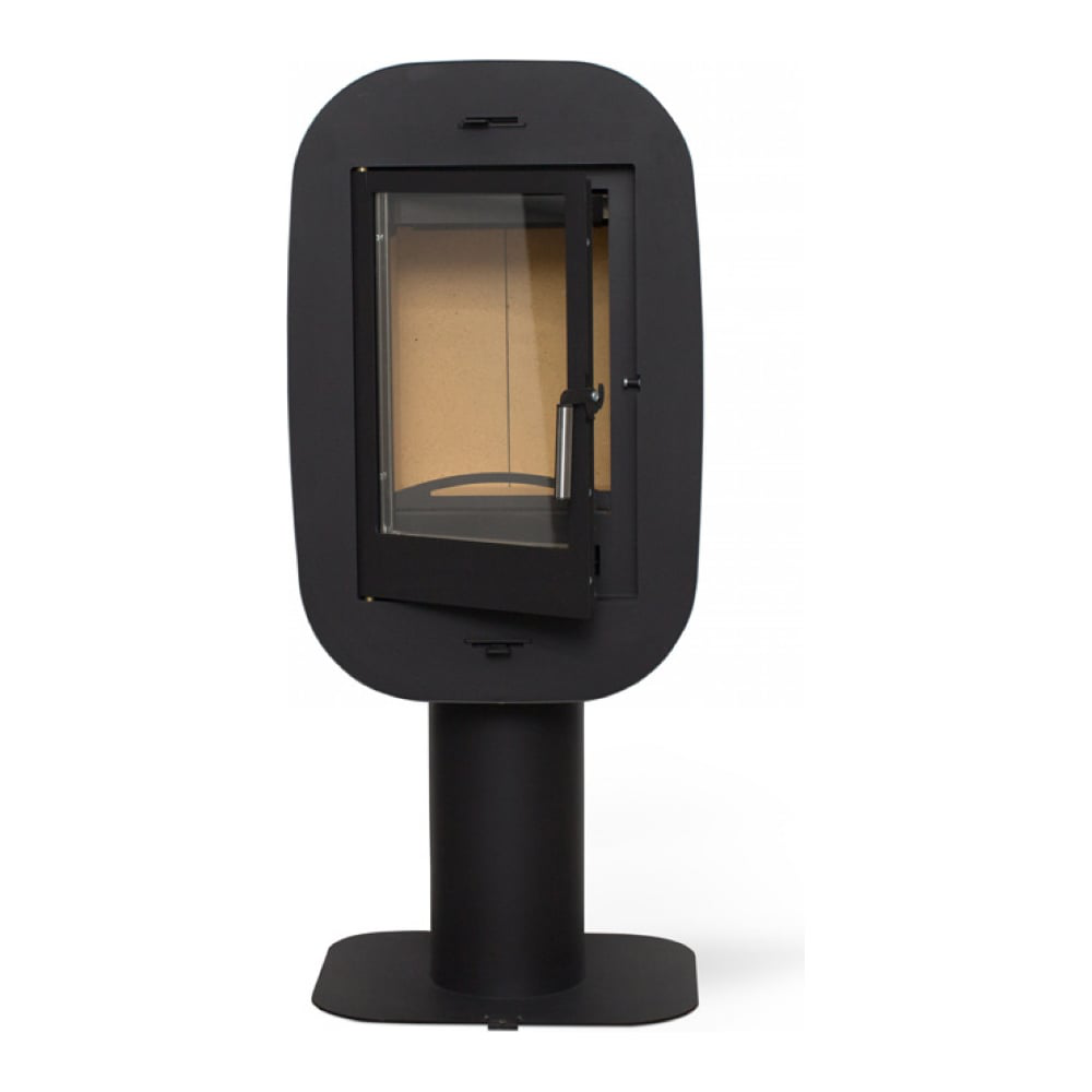 Пучь можно свободно устанавливать в помещении без примыкания к стене. Оригинальный дизайн делает печь доминантой в небольшом клубном помещении - бильярдная, бар, музыкальная комната. Подходит для обогрева небольшого помещения площадью 30-60 м2. Дверка высотой 310 мм. Размер поленьев 30-32 см вертикально. Подсоединение к дымоходу сверху. Система очистки «чистое стекло».