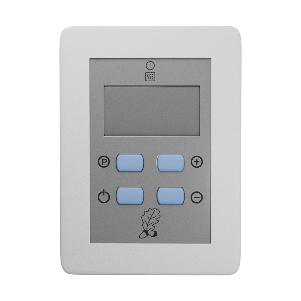 Пульт управления для электрокаменки VVD ПУ-04 М 15-24/380 кВт электронный блок ПУ, силовой блок ПУ 260x210x100мм 9849 представляет собой пластиковый корпус, на лицевой поверхности которого, размещены текстовый информационный экран и кнопки управления. Пульт управления включает в себя: Цифровой измеритель температуры. Терморегулятор с диапазоном регулирования от +30 до +125°С. Контур управления включением и выключением. Пульт управления обеспечивает: Автоматическое полное отключение устройства, если с момента последнего воздействия на элементы управления ПУ прошло более 6 часов (заводские установки). Автоматическое включение и выключение в соответствии с заданной на пульте температурой в парильном помещении При нажатии кнопки на пульте «Р» попеременную индикацию текущей температуры и влажности. Светодиодную индикацию работы.