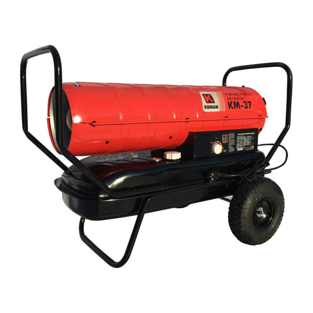 Тепловая пушка KOMAN дизель/керосин 37KW прямой нагрев, KM-37 используется на строительных площадках, в сельском хозяйстве, для осушения и отапливания производственных и складских хорошо проветриваемых помещений. Пушка оборудована индикатором температуры воздуха и встроенным термостатом, что позволяет им производить автоматическое выключение и запуск, поддерживая заданный температурный режим. Также тепловая пушка оснащена системой высоковольтного контроля пламени и датчиком уровня топлива.