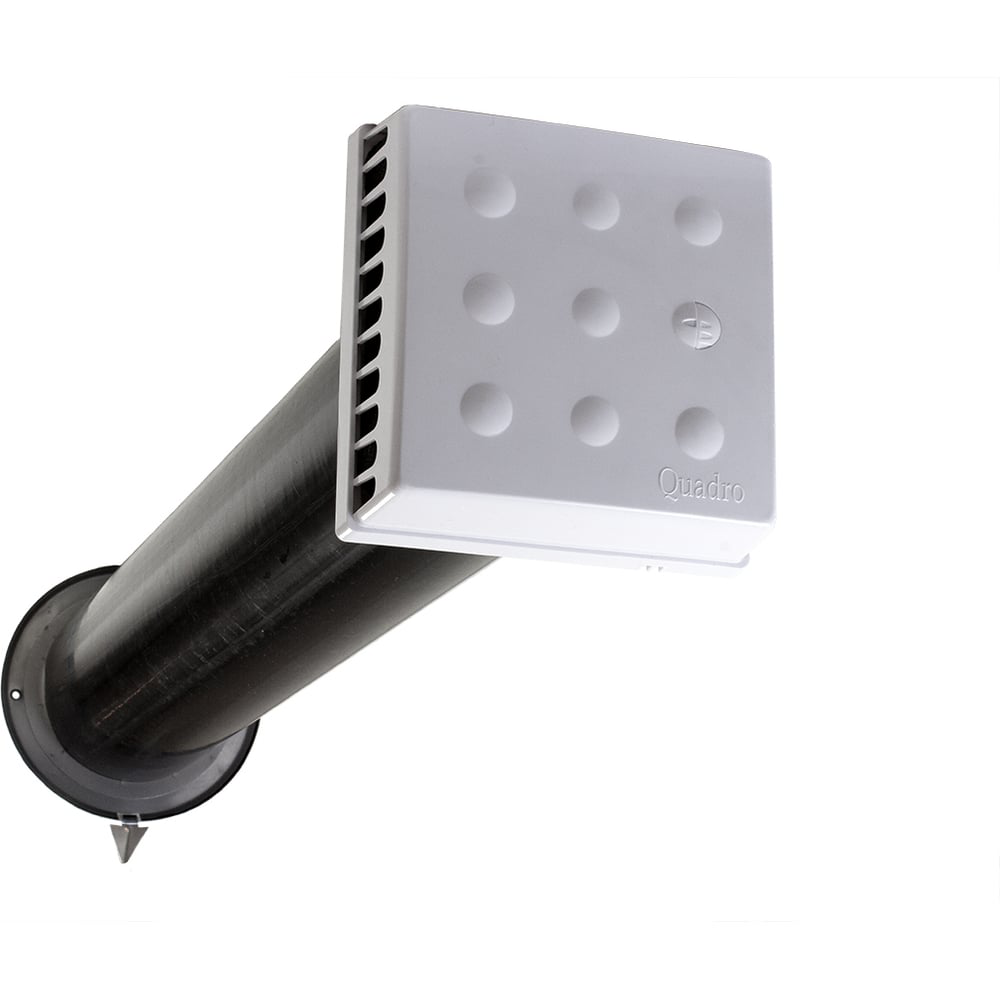 .Приточный клапан KIV Quadro Super-125 1000 представляет собой автономное механическое устройство, позволяющее создавать приток свежего наружного воздуха в помещение и контролировать его интенсивность. Клапан может быть установлен на любых объектах, и его работа не оказывает влияния на характеристики конструкций стен. Благодаря компактным размерам оголовка – 185х185х65 мм, размещение возможно в местах с ограниченным пространством.Данная модель обладает рядом преимуществ:4 положения поворотной ручки;эффективное проветривание без сквозняков;класс фильтра оголовка EU3 (G3);препятствует проникновению шумов с улицы;простая установка в любом месте наружной стены.Конструкция клапана включает внутренний оголовок, трубу с теплошумоизоляцией и наружную решетку с козырьком и каплесборником (Ecto-125). Внутренний оголовок предназначен для распределения и регулировки поступающего воздуха.Составные элементы внутреннего оголовка:внутренняя часть с заслонкой, уплотнительным кольцом и теплоизолирующей прокладкой;регулировочный шнур и регулировочная ручка;уплотнительное кольцо и уплотнитель;крышка оголовка с теплоизоляцией;фильтр - EU 3;2 заглушки;Регулировка клапана КИВ:Настройка интенсивности подачи свежего воздуха производится с помощью рукоятки, расположенной на оголовке клапана, либо при помощи специального шнура.Минимальное проветривание:В случае необходимости в минимальном проветривании, достаточно удалить заглушки, расположенные в лопастях заслонки.