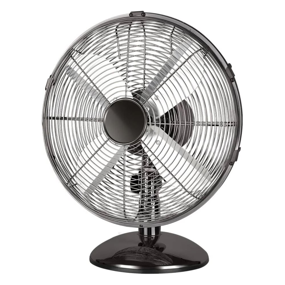 Настольный вентилятор в полностью металлическом корпусе, диаметром 30 см., с 4-мя металлическими лопастями, высококачественной защитной решеткой, устойчивой подставкой, и мотором мощностью 45 Ватт создает мощный поток охлаждающего воздуха. Низкий уровень шума и 3 скорости работы обеспечивают скорейшее достижение комфортных условий в душном помещении, а функция регулировки наклона позволяет оптимально настроить поток воздуха. Вентилятор может работать как в фиксированном положении, так и с поворотом относительно своей оси, что существенно увеличит площадь обдува. Постоянная циркуляция воздуха в комнате, либо офисе дарит ощущение свежести, способствует лучшему тонусу и отличному настроению в течение всего дня, а ночью – крепкому сну и быстрому восстановлению сил. Металлический корпус с хром-эффектом в особенном дизайне украсит даже самый изысканный интерьер. Надежные компоненты вентилятора обеспечат долгий срок службы без каких-либо проблем.