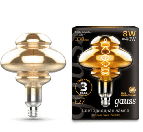 Лампа Gauss Led Vintage Filament Flexible BD160 8W E27 160*210mm Gray 2400K 162802008 Мощность: 8 ВтЦветовая температура: 2400K