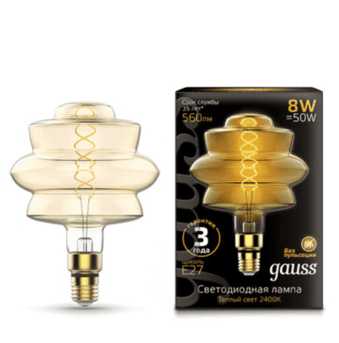 Лампа Gauss Led Vintage Filament Flexible BD180 8W E27 180*250mm Golden 2400K 161802008 Производитель: GaussМощность: 8 Вт