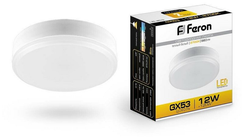 Лампа Feron GX53 LB-453 12W 2700K, 25833 легко устанавливается и имеет длительный срок службы, что делает ее отличным выбором для замены старых неэффективных ламп и создания комфортного освещения в любом помещении.