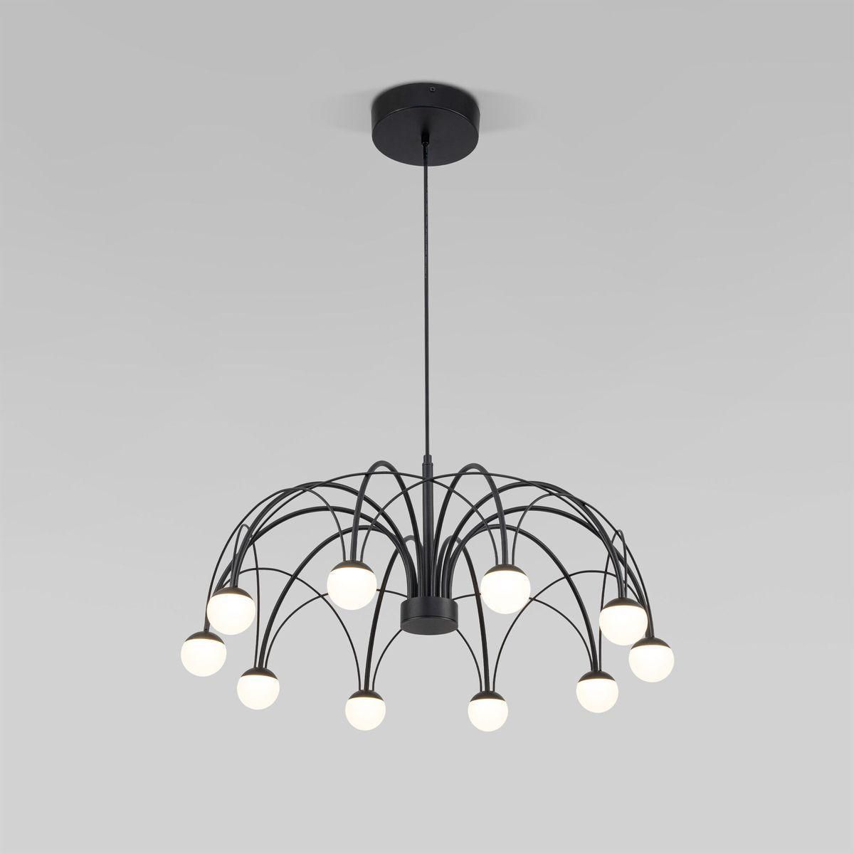 Расширенная гарантия на товар составляет 5 лет. поставщик рекомендует использовать лампы накаливания с цоколем LED для освещения площади 10 м2. Подвесная светодиодная люстра Eurosvet Ragno 90034/10 LED черный в современном стиле используется в интерьере Для кухни с установкой На потолок.