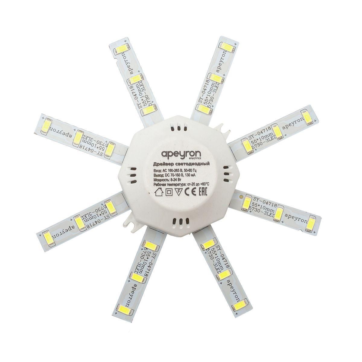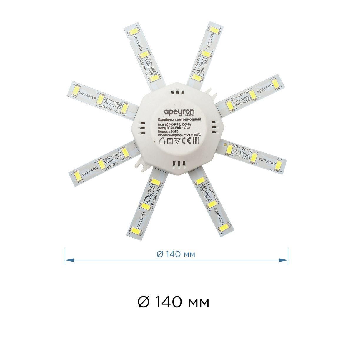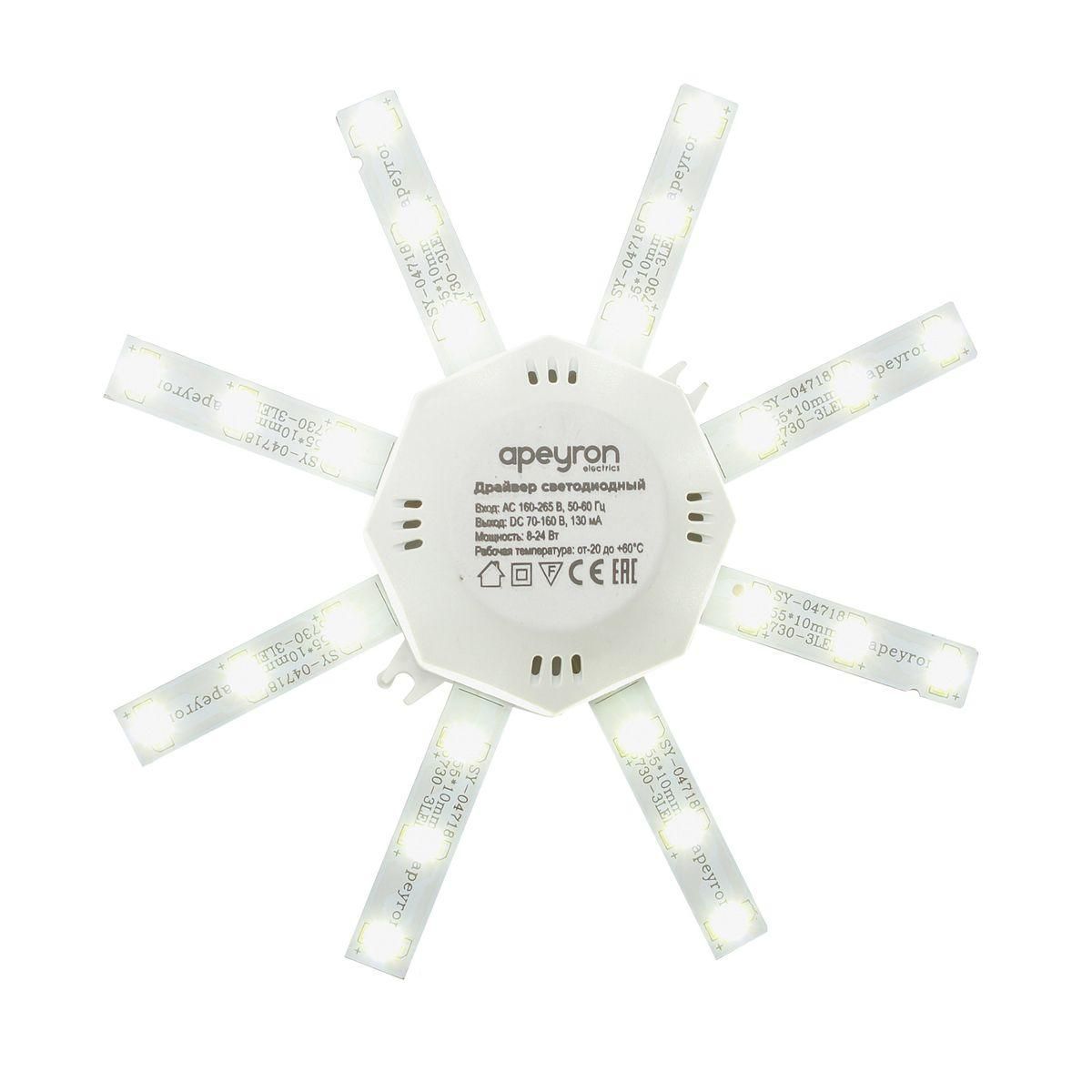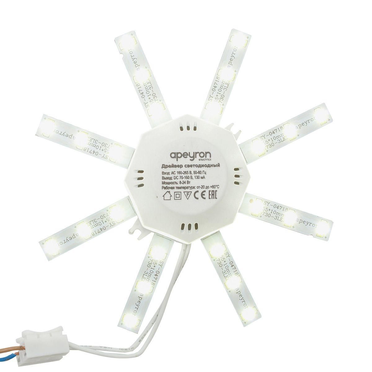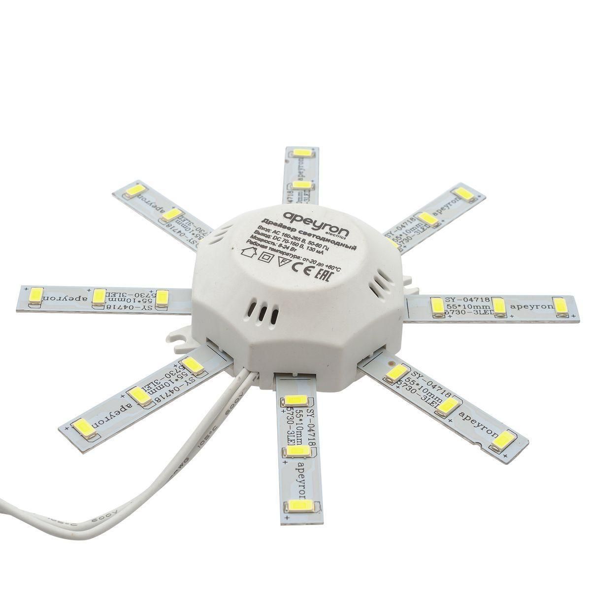 Расширенная гарантия на товар составляет 12 месяцев. поставщик рекомендует использовать лампы накаливания с цоколем не указан для освещения площади не указана м2. Светодиодный модуль Apeyron Звездочка 12-15 в современном стиле используется в интерьере не указан с установкой не указано.