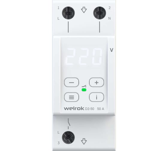 Реле напряжения Welrok d2-50 4660251140052 защищает оборудование от скачков и провалов напряжения, обрыва нулевого провода. Реле отключает нагрузку, если сетевое напряжение выходит за установленные пределы. Когда значение напряжения вернется в норму, нагрузка будет автоматически включена обратно. Подключение можно сделать с транзитом или без транзита нуля через Welrok D2. При этом вход нуля может быть как вверху так и внизу реле.