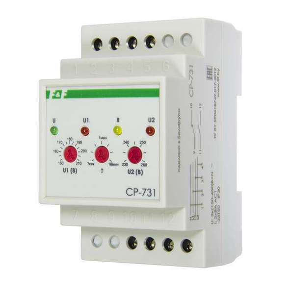 Реле напряжения CP-731 - это трехфазное устройство с микропроцессорным контролем верхних и нижних значений напряжения, а также контролем ассиметрии и чередования фаз. Оно предназначено для монтажа на DIN-рейке 35мм и подходит для работы с напряжением 3х400/230+N. Устройство имеет два независимых контрольных канала с нагрузочной способностью до 8А каждый. Реле CP-731 обеспечивает надежную защиту электрооборудования от перегрузок и перенапряжений, обеспечивая стабильную работу системы электроснабжения. Защитный класс IP20 гарантирует безопасность использования устройства.