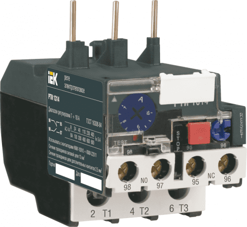 Реле электротепловое серии РТИ является электрическим коммутационным устройством, имеющим собственное потребление энергии. Электротепловое реле серии РТИ предназначено для защиты электродвигателей от перегрузки, асимметрии фаз, затянутого пуска и заклинивания ротора. Устанавливается непосредственно на контакторах серии КТИ и КМИ. Для защиты от короткого замыкания должны быть предусмотрены предохранители или автоматические выключатели на соответствующее значение номинального тока срабатывания. Соответствуют требованиям ГОСТ Р 50030.2.