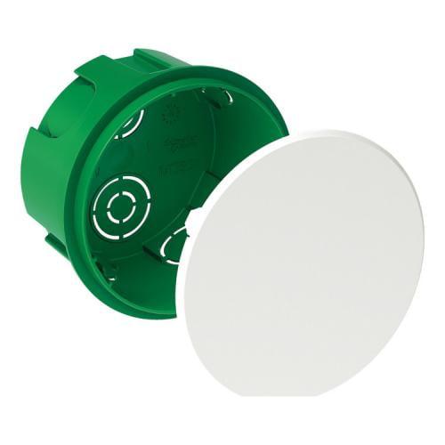 Установочная коробка для сплошных стен, круглая. Одноместная установочная коробка с 8 перфорированными отверстиями для ввода.