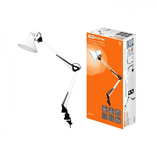 Настольный светильник TDM 220В 40Вт, E27 белый SQ0337-0027 струбцина - это стильный и функциональный светильник, который идеально подойдет для использования на рабочем столе, прикрепив его с помощью струбцины. Он оснащен лампочкой с цоколем E27 и мощностью 40Вт, что обеспечивает яркое освещение рабочей зоны. Благодаря белому цвету и современному дизайну, этот настольный светильник отлично впишется в любой интерьер, добавив комфорта и уюта в помещение.