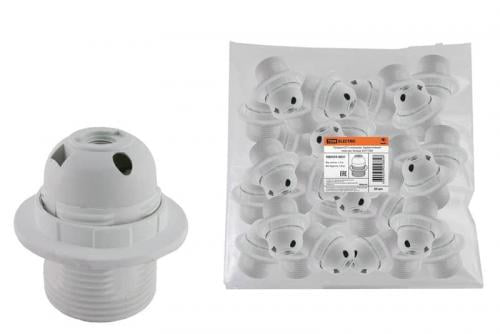 Патрон E27 с кольцом, изготовленный из термостойкого пластика, предназначен для установки ламп с цоколем E27. Белый цвет корпуса патрона и его нейтральный дизайн делают его универсальным и подходящим для любого интерьера. Продукт от компании TDM обеспечивает надежное соединение и безопасное использование лампы.