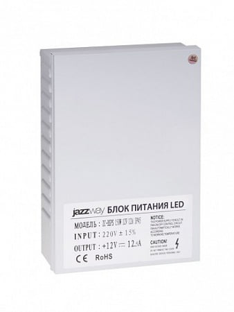 Блок питания Jazzway 12V12,5A=150W IP45, 1001221 - надежное и эффективное решение для вашего освещения, которое обеспечит долговечную и безопасную работу светодиодных лент.