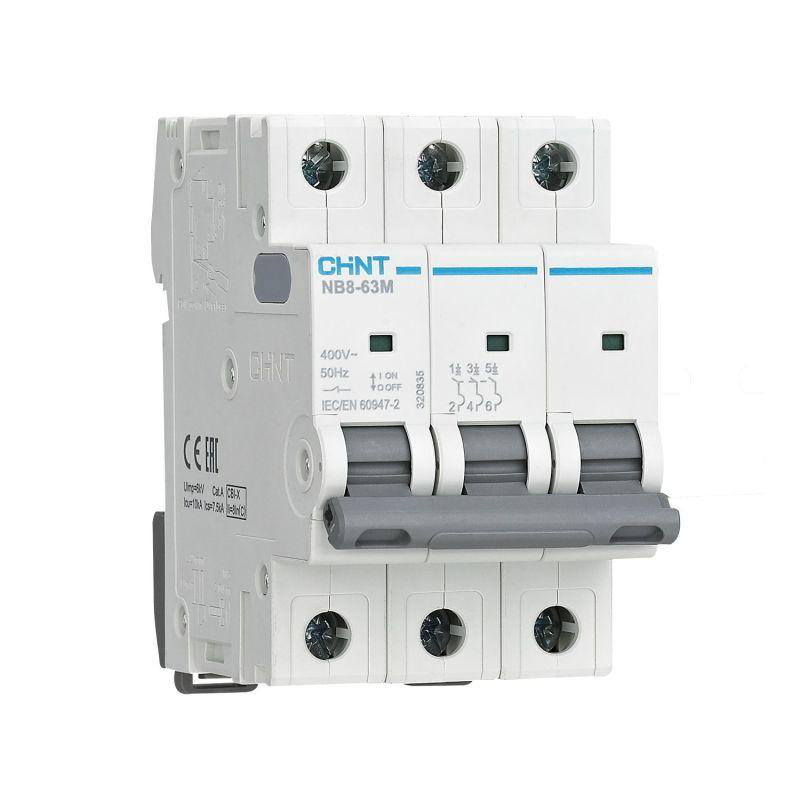 Модульные автоматические выключатели серии NB8-63M предназначены для применения в сетях переменного тока напряжением до 400 В частотой 50/60 Гц с номинальным током до 63 А для нечастых включений и отключений нагрузок, а также защиты от короткого замыкания в электроустановках жилых, общественных и промышленных зданий.Автоматические выключатели серии NB8-63M имеют исполнение без теплового расцепителя и рекомендованы для защиты и управления двигателями, а также установки в щитах кондиционирования и пожарной безопасности: дымоудаления, и вентиляции.