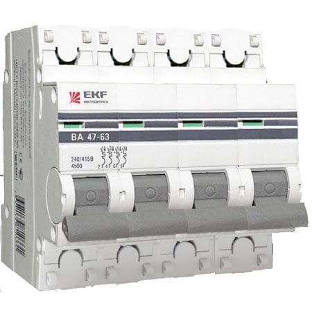 Автоматические выключатели ВА 47-63 4,5 кА EKF PROxima являются механическими коммутационными аппаратами и соответствуют ГОСТ Р50345-2010. Особенностью данной серии выключателей является усовершенствованная конструкция. В выключателях имеются пластиковые крышки, закрывающие доступ к винтовому зажиму и служащие для опломбирования выключателей, что исключает несанкционированный доступ к проводникам. Корпус выключателей усилен дополнительными заклепками для устранения эффекта расхождения корпуса. Выключатели оборудованы удобной ручкой управления, обеспечивающей надежное оперирование изделиями. На лицевой панели выключателей имеется цветовой индикатор состояния. Конструкция установочного зажима обеспечивает свободную установку выключателя на DIN-рейку.