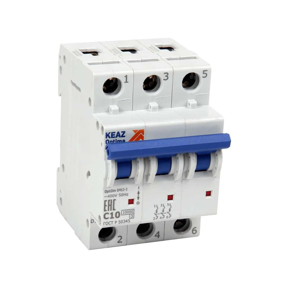 Автоматический модульный выключатель КЭАЗ 3п C 13А 10кА OptiDin BM63-3C13-10-УХЛ3 249255