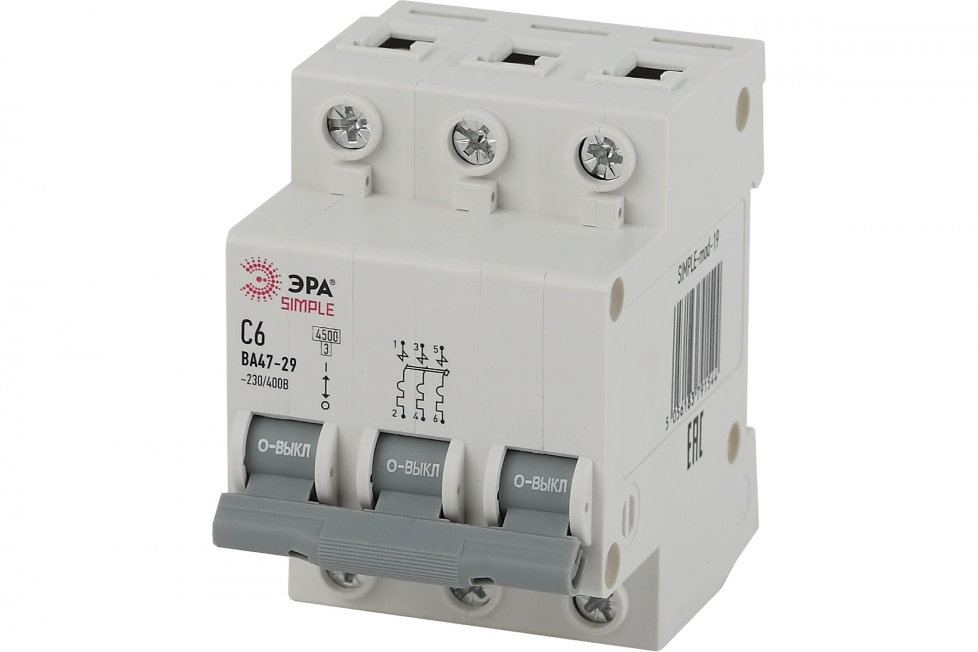 ЭРА 3P 16А (C) 4,5кА ВА 47-29 SIMPLE-mod-21 SIMPLE Б0039238 - это простой и удобный в использовании автоматический выключатель, который легко устанавливается и подключается к электрическим сетям. Он имеет компактный и эргономичный дизайн, что облегчает его установку и использование в различных условиях.