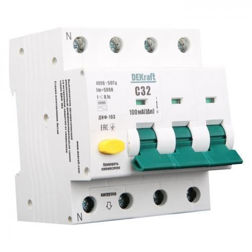Дифавтомат DEKraft ДИФ-103 3P+N 25А (C) 6 кА, 100 мА (AC), 16218DEK является надежным и безопасным решением для защиты электрических цепей в домах, офисах, промышленных и коммерческих помещениях.