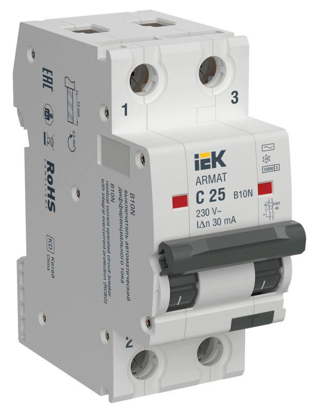 В нашем магазине «Главэлектрика» в Москве-Чертаново, вы можете приобрести товар: «ARMAT Автоматический выключатель дифференциального тока B10N 2P C25 30мА тип AC IEK» с доставкой по г. Москва-Чертаново.